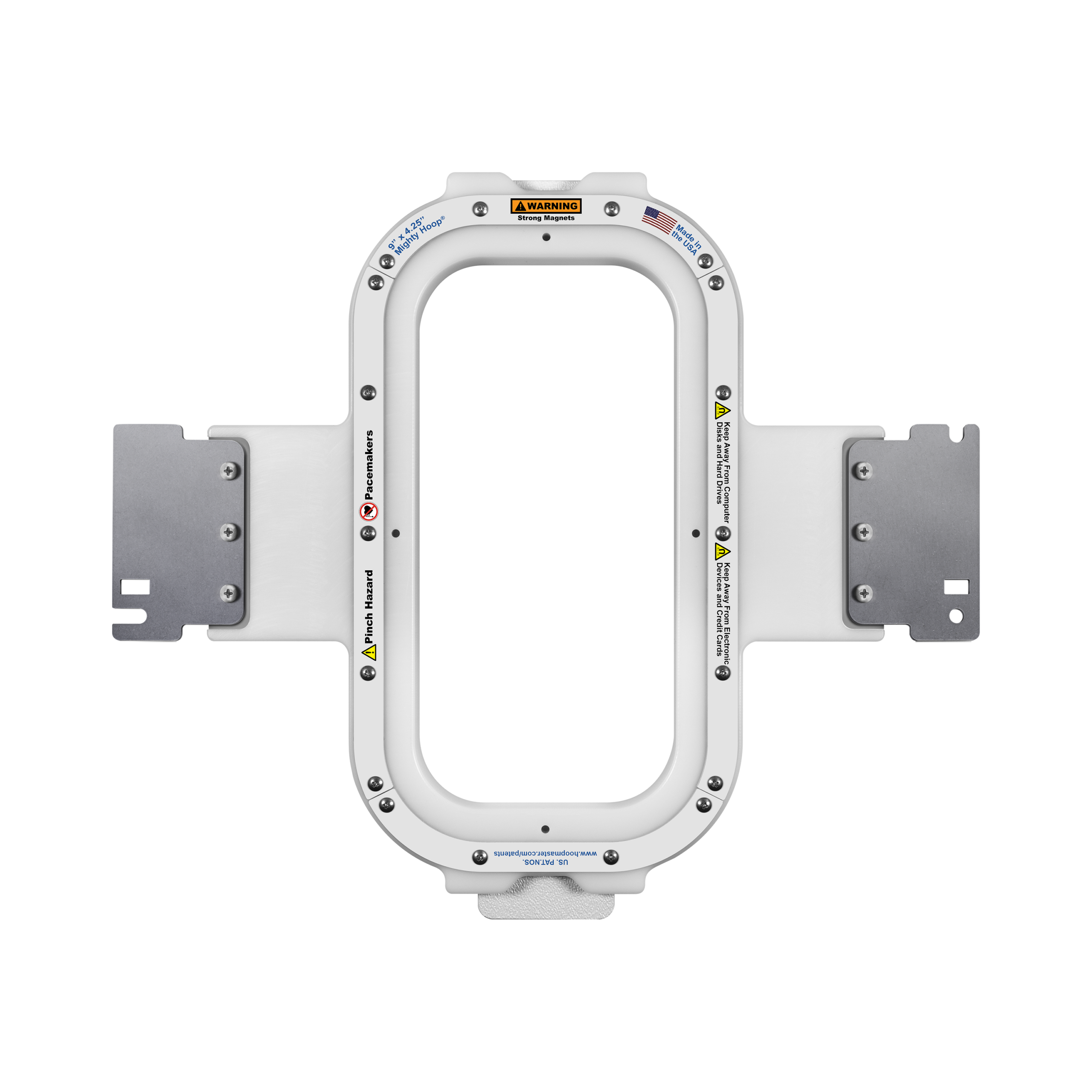 The inside dimension of this hoop is 9 x 4 1/4” (8.875“ x 4.25 ”, or 225mm x 108mm)
